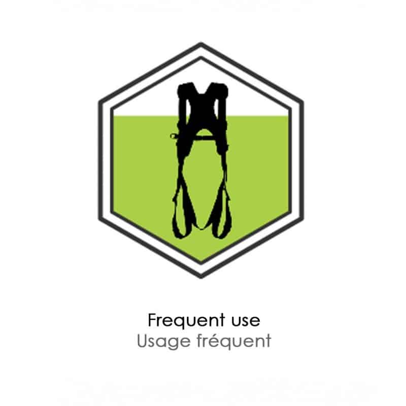 Aan de borstzijde 1 ankerpunt voor valbescherming uitgevoerd in 2 webbing lussen.